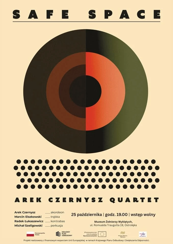 25 października o godz. 19:00 w Muzeum Żołnierzy Wyklętych w Ostrołęce wystąpi Arek Czernysz Quartet, prezentując materiał z albumu 'Safe Space”.