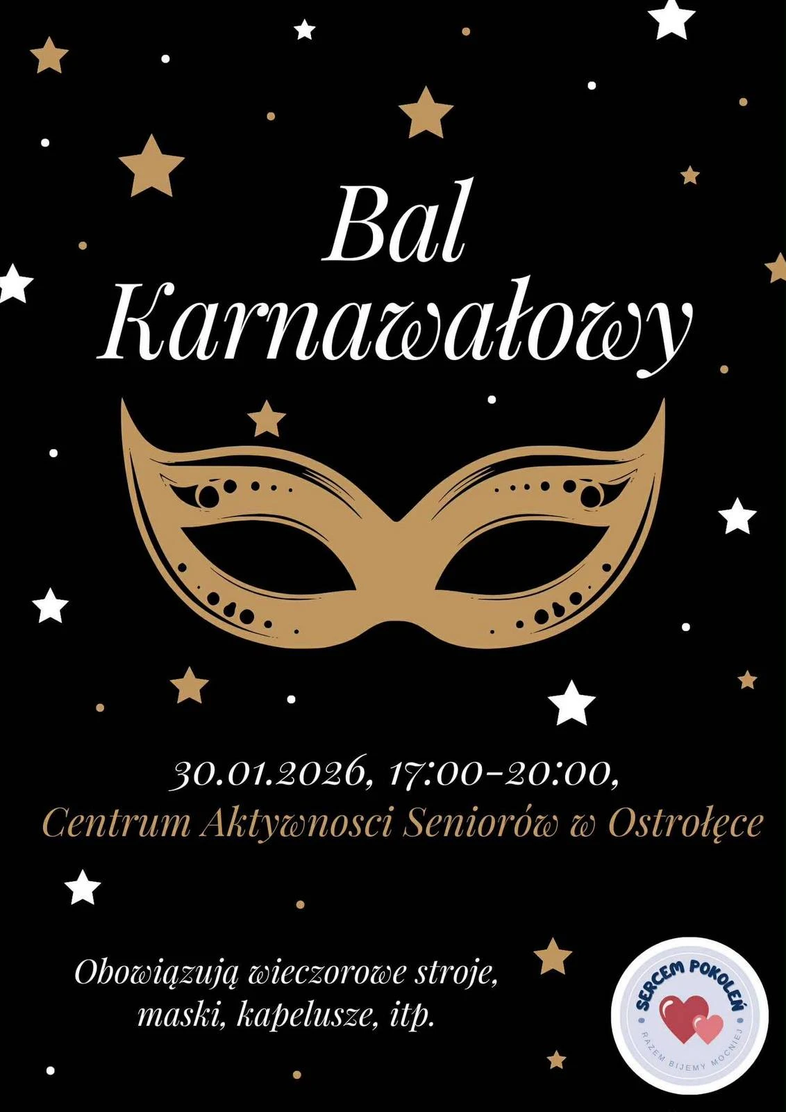 Bal Karnawałowy odbędzie się 30 stycznia w Centrum Aktywności Seniorów w Ostrołęce. Jest organizowany w ramach ogólnopolskiej olimpiady Zwolnieni z Teorii – projektu międzypokoleniowego 'Sercem Pokoleń”, realizowanego przez uczennice II Liceum Ogólnokształcącego.