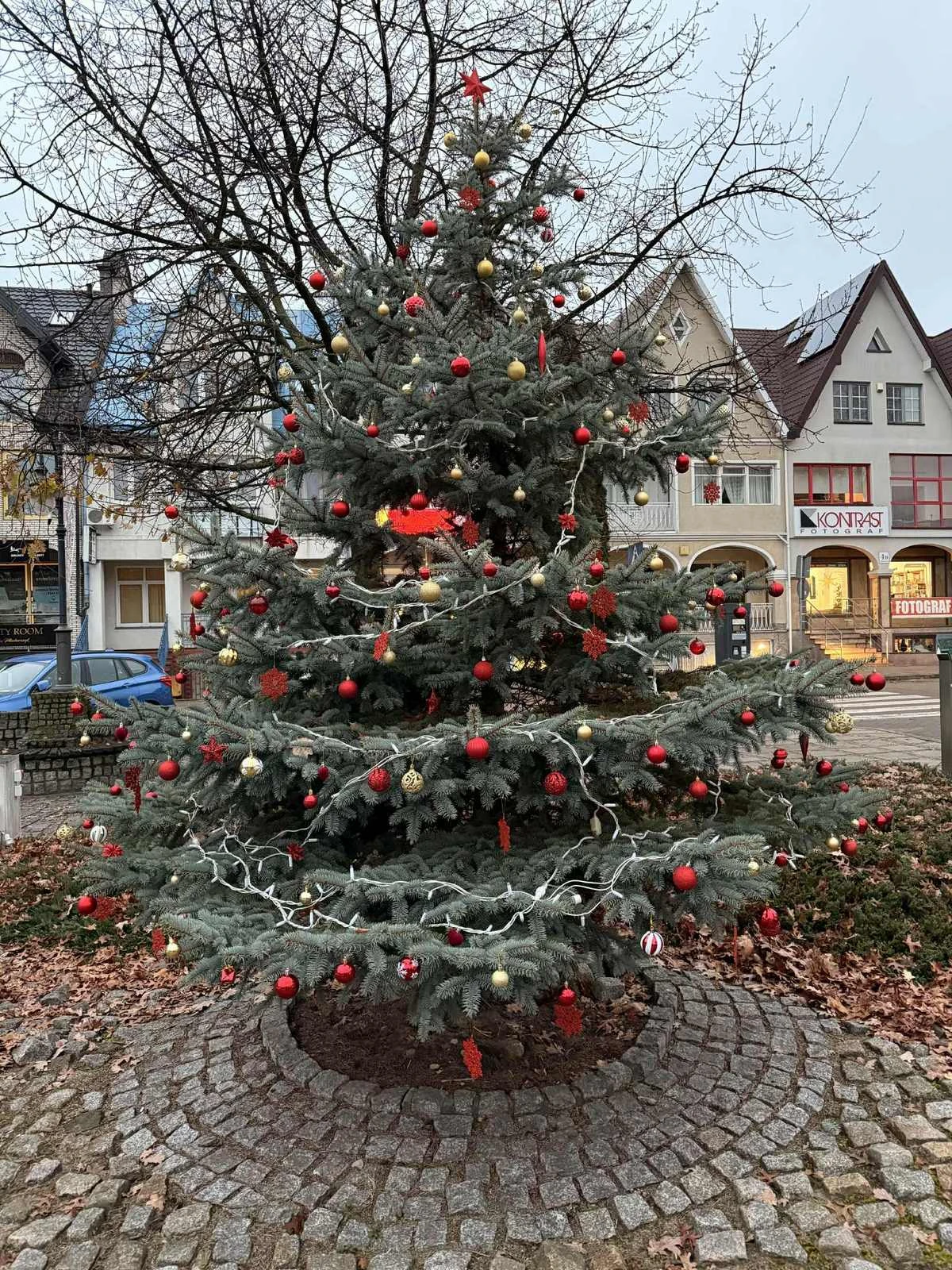 Choinka na skwerze im. Lecha Kaczyńskiego w Ostrołęce