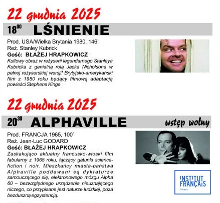 O godz. 18 zostanie wyświetlone 'Lśnienie. Zaprasza Maciej Ceglewski.