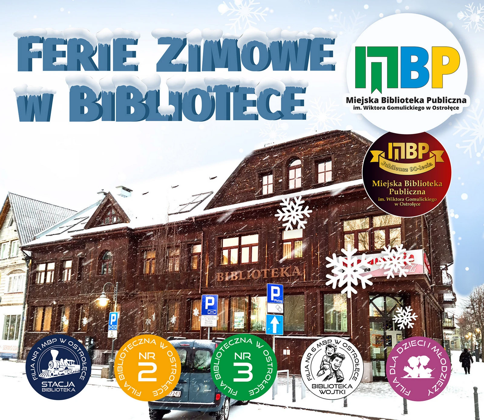 Miejska Biblioteka Publiczna w Ostrołęce zaprasza na 'Ferie Zimowe 2026 z Biblioteką”. Program przygotowano z okazji 90-lecia istnienia instytucji.