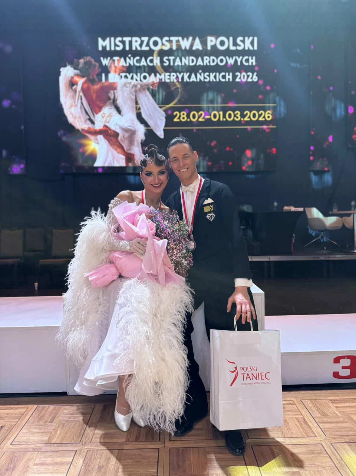 Miniony weekend zapisze się w historii UKS ATRIA na długo. Podczas tegorocznych Mistrzostw Polski PZST Aleksandra Kucharska i Paweł Subczyński zdobyli brązowy medal w kategorii Dorośli Standard. Wynik jest nie tylko spełnieniem marzeń, ale także jednym z najważniejszych osiągnięć w dziejach tancerzy z Ostrołęki. To moment, który pokazuje, jak daleko można dojść dzięki pasji, konsekwencji i wieloletniej pracy.