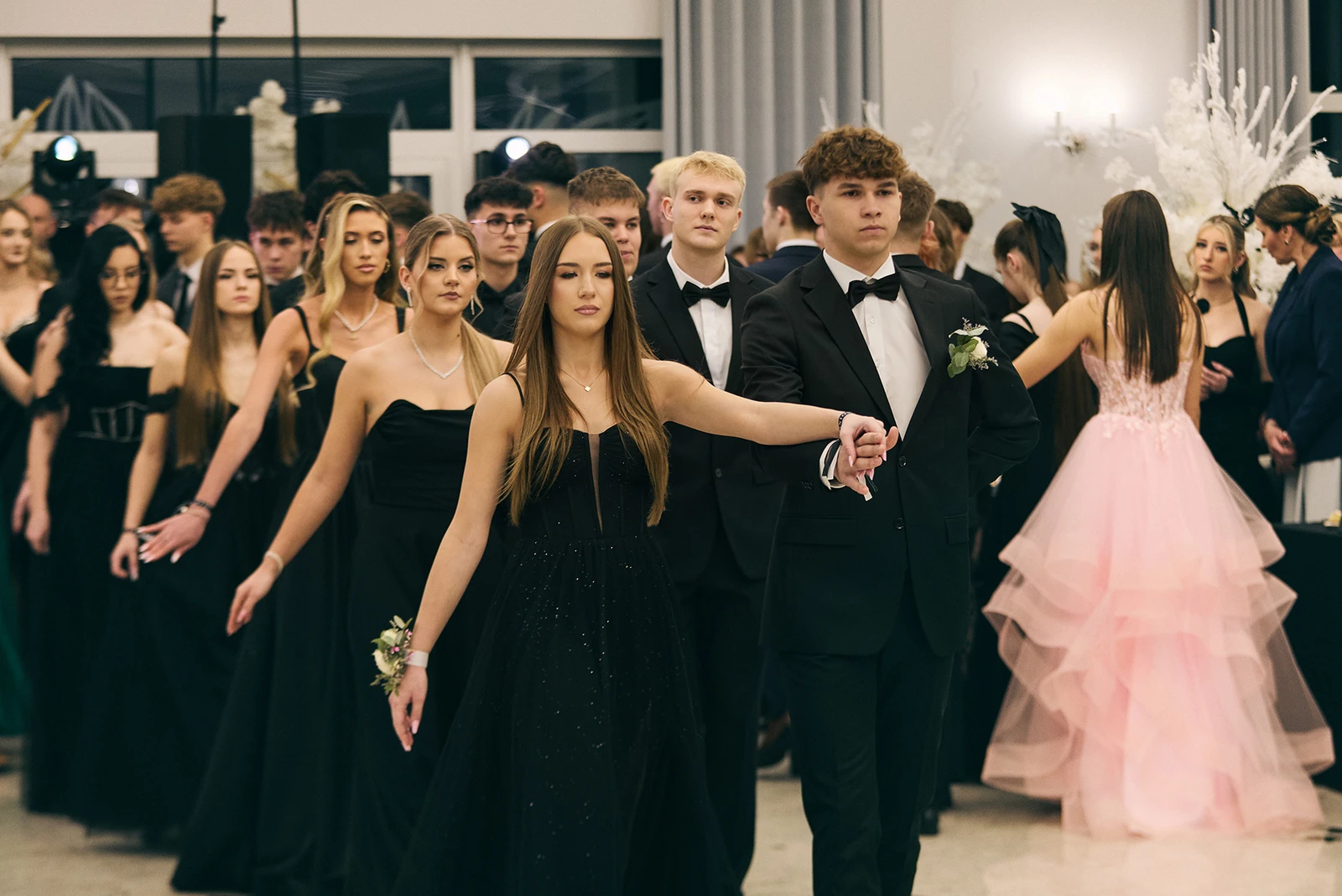 Uroczystość odbyła się w sali bankietowej w Laskowcu. Przestronne wnętrza i elegancka oprawa sprawiły, że lokal stał się idealnym tłem dla wydarzenia, łączącego szkolną tradycję z nowoczesną formą balu.