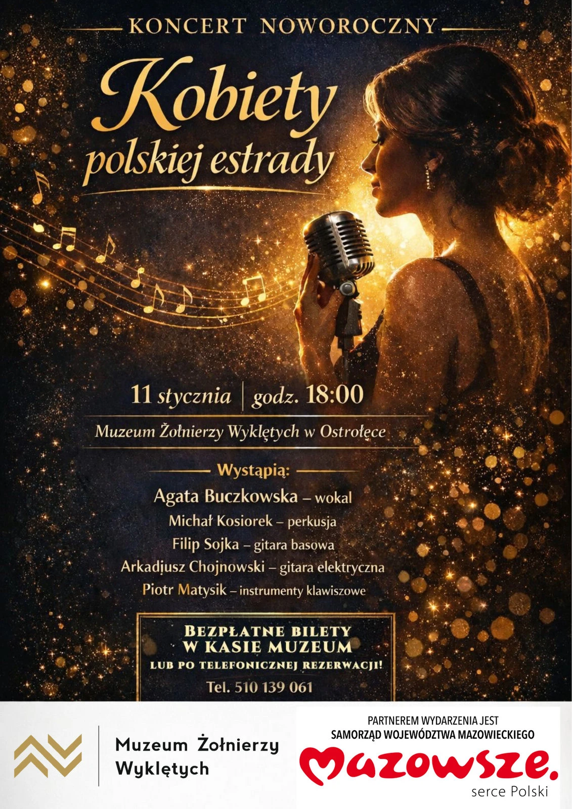Na koncert noworoczny zaprasza w najbliższą niedzielę Muzeum Żołnierzy Wyklętych w Ostrołęce. Na scenie wystąpi Agata Buczkowska z zespołem. Zabrzmią najpiękniejsze utwory kobiet polskiej estrady – pełne emocji, siły i ponadczasowych melodii.