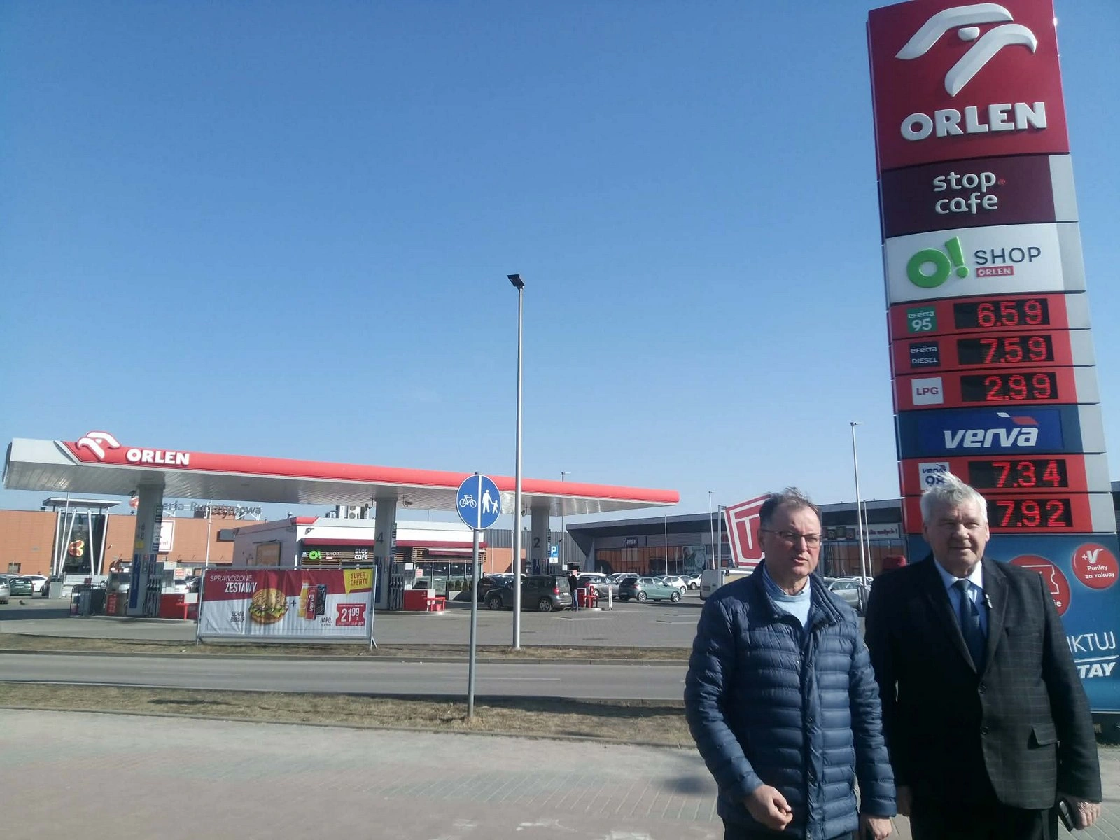 Konferencja prasowa poświęcona wzrostowi cen paliw odbyła się 10 marca na stacji Orlen przy ulicy Goworowskiej 39, na parkingu Galerii Bursztynowej w Ostrołęce.