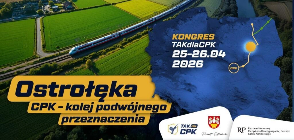 Ogólnopolski kongres ekspercki pn. 'CPK – Kolej podwójnego przeznaczenia”, poświęcony strategicznemu znaczeniu tzw. szprychy nr 3 – połączenia kolejowego na trasie Centralny Port Komunikacyjny-Warszawa-Ostrołęka-Łomża-Giżycko dla bezpieczeństwa i obronności państwa oraz spójności komunikacyjnej kraju odbędzie się w Ostrołęce.