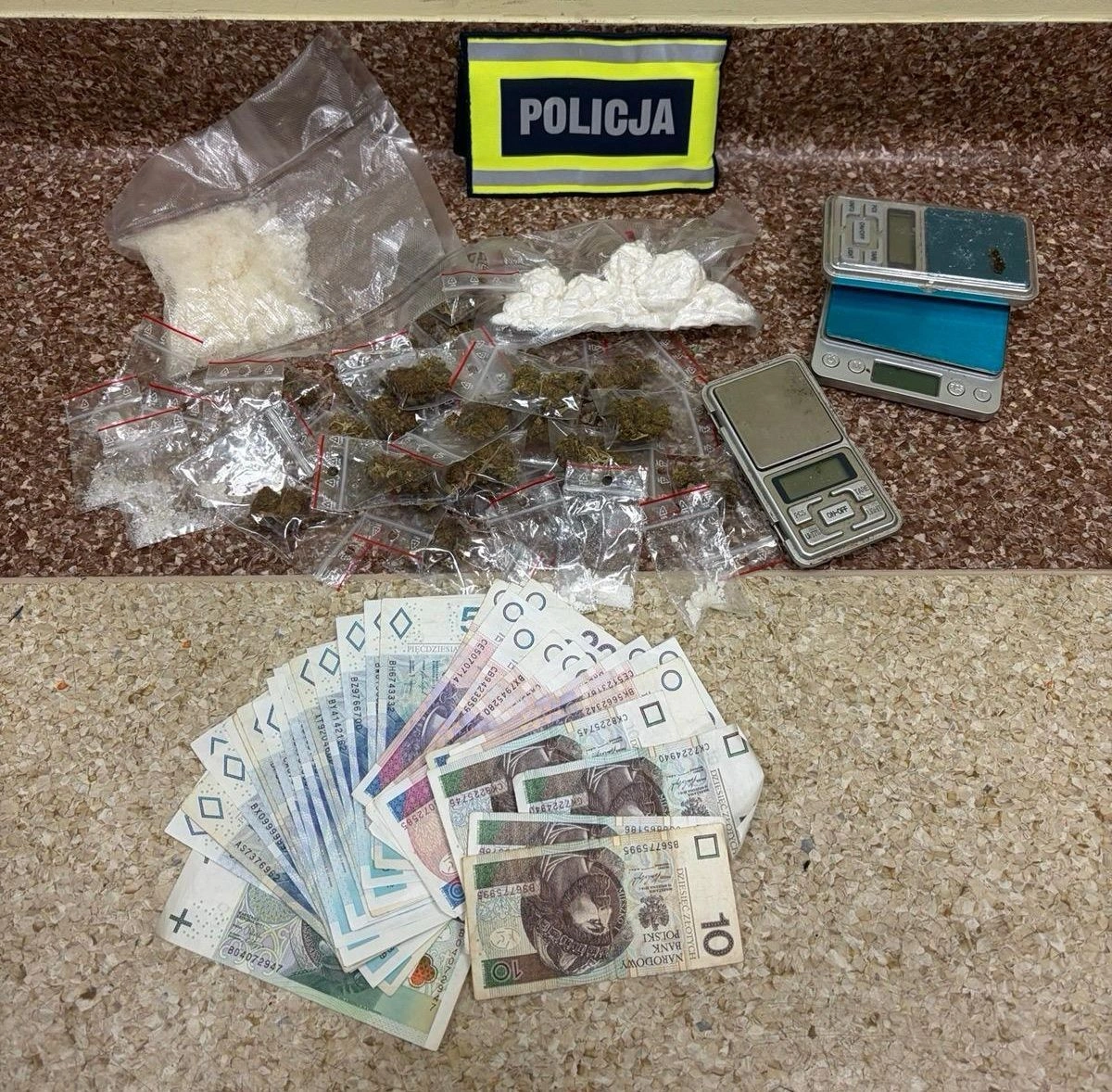 Pod koniec ubiegłego tygodnia kryminalni ustalili, że jeden z mieszkańców Ostrołęki może przechowywać w swoim mieszkaniu narkotyki. W trakcie przeszukania funkcjonariusze znaleźli i zabezpieczyli znaczne ilości mefedronu, amfetaminy oraz marihuany. Można było z tego przygotować blisko pół tysiąca porcji handlowych. Zabezpieczono także trzy małe wagi elektroniczne, które mogły służyć do porcjowania narkotyków, a także pieniądze.
