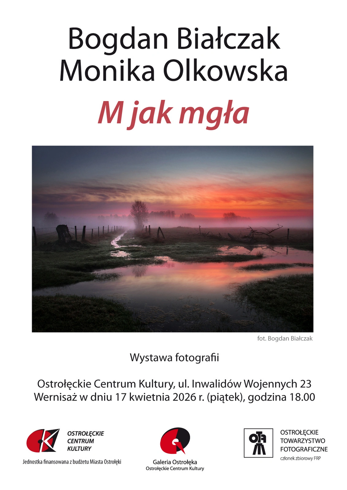 Galeria Ostrołęka oraz Ostrołęckie Towarzystwo Fotograficzne zapraszają na wernisaż wystawy fotografii 'M jak mgła”, który odbędzie się 17 kwietnia w Ostrołęckim Centrum Kultury.
