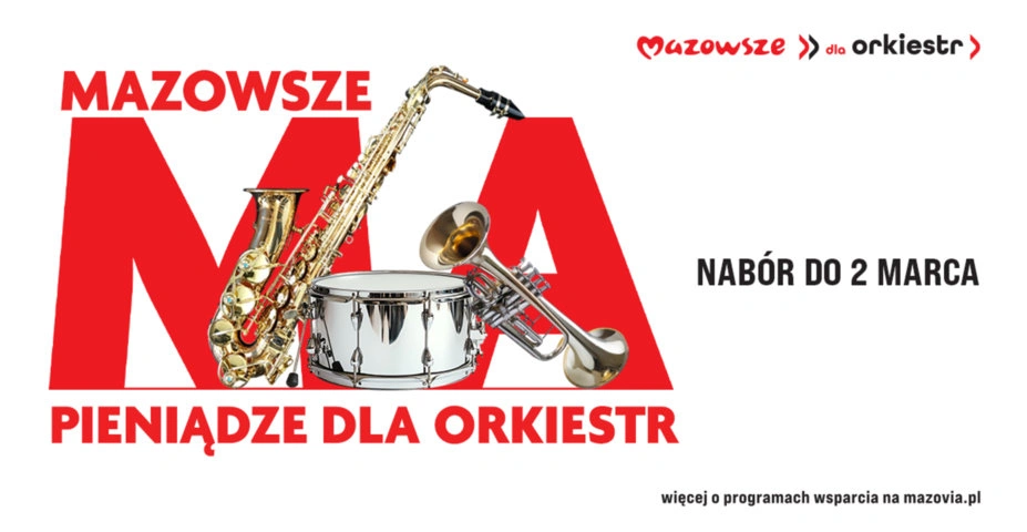 Organizacje pozarządowe z całego Mazowsza mogą ubiegać się o dofinansowanie na zakup instrumentów dla orkiestr. Nabór wniosków trwa do 2 marca. Warto się zgłaszać, bo można otrzymać nawet 50 tys. zł.