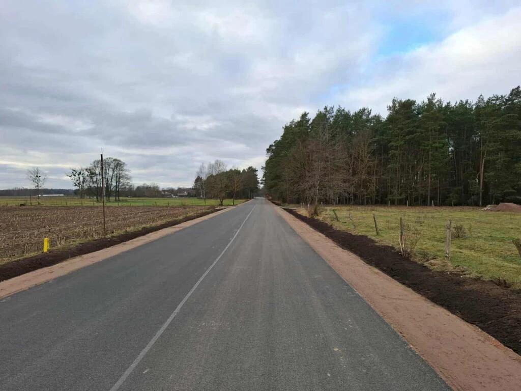 W ramach rozbudowy drogi wykonano m.in. poszerzenie jezdni, nowe podbudowy, umocnienie poboczy, zjazdy do posesji oraz oznakowanie pionowe.