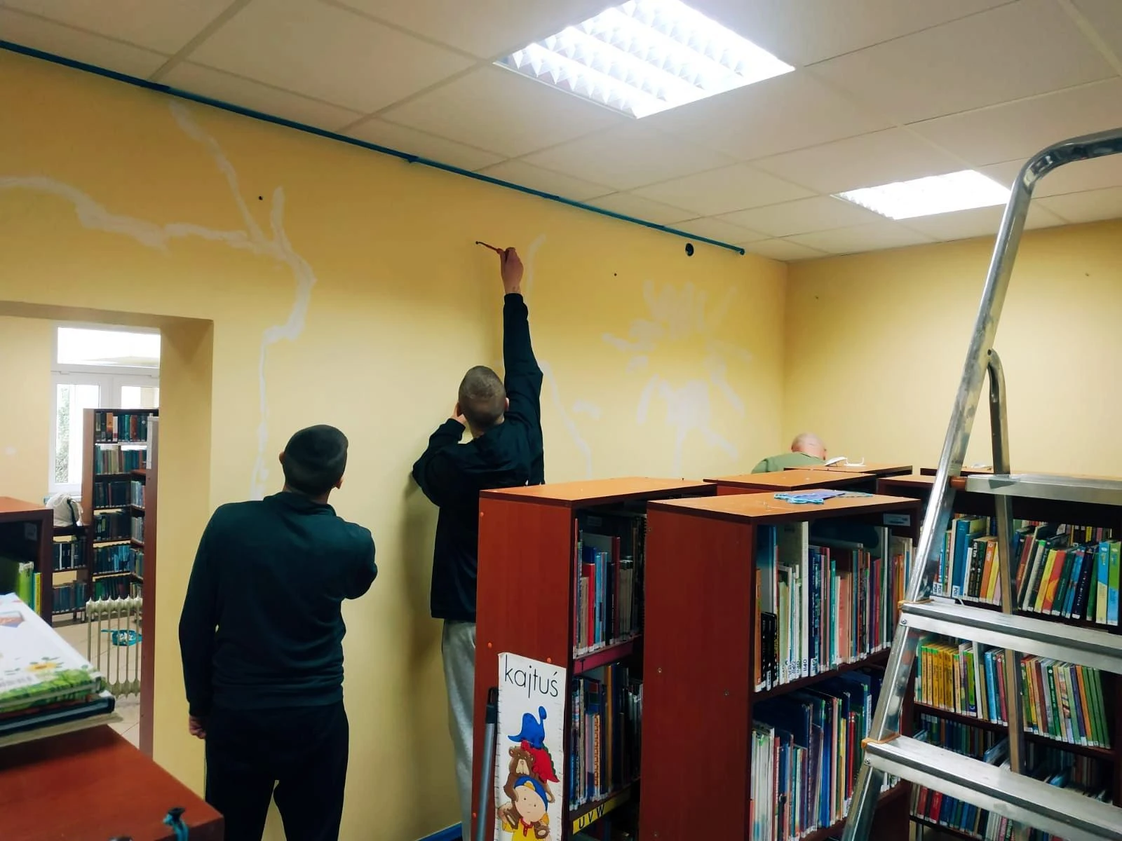 Sześciu skazanych, którzy po raz pierwszy odbywają karę pozbawienia wolności w Zakładzie Karnym w Przytułach Starych w ciągu jednego dnia pomalowało dwie sale. Ich zaangażowanie oraz staranność spotkały się z ogromnym uznaniem ze strony pracowników biblioteki.