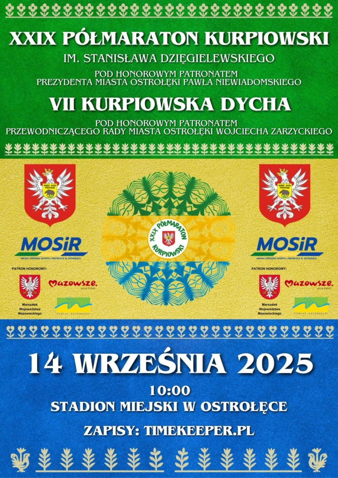 14 września o godzinie 10:00 ze stadionu miejskiego przy ulicy Witosa 1 wystartuje XXIX Półmaraton Kurpiowski im. Stanisława Dzięgielewskiego.