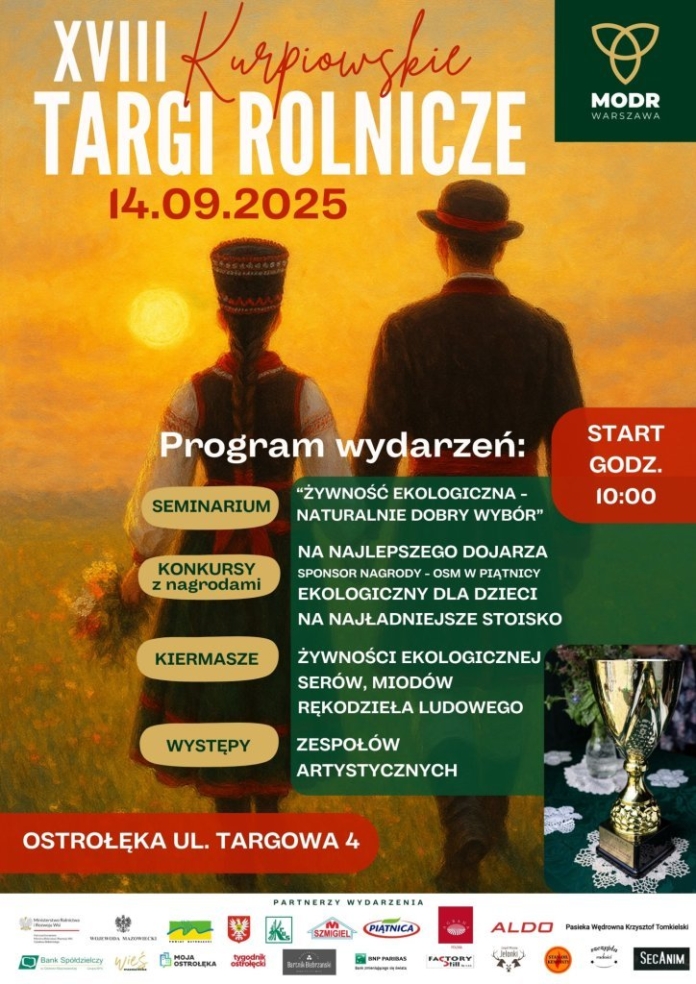 Mazowiecki Ośrodek Doradztwa Rolniczego Oddział w Ostrołęce zaprasza 14 sierpnia na XVIII Kurpiowskie Targi Rolnicze, które odbędą przy ul. Targowej 4, w godz. 10.00–18.00.