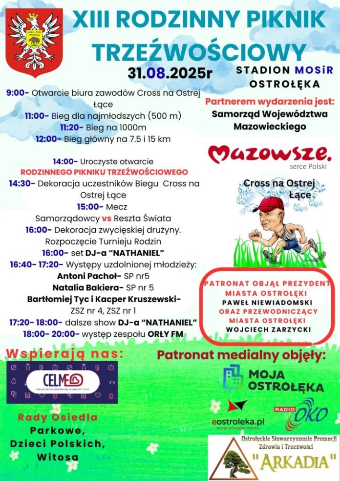 Już w najbliższą niedzielę, 31 sierpnia,na terenie Stadionu Miejskiego MOSiR w Ostrołęce odbędzie się XIII Rodzinny Piknik Trzeźwościowy.