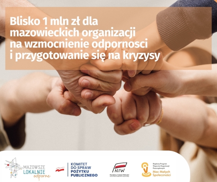 Lokalne organizacje z Mazowsza mają szansę na zdobycie mikrodotacji do 12 000 zł w ramach konkursu 'Mazowsze Lokalnie Odporne”. Inicjatywa skierowana jest do organizacji pozarządowych i grup nieformalnych z miejscowości poniżej 100 tys. mieszkańców, które chcą wzmacniać swoją społeczność i budować jej odporność na kryzysy.