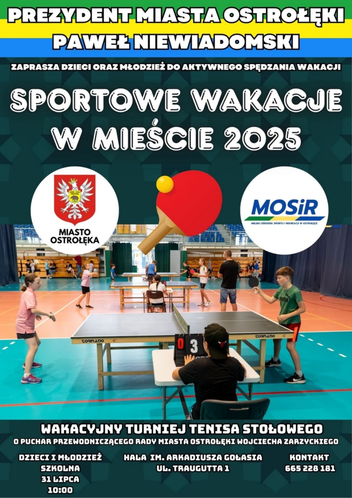 Turniej Tenisa Stołowego o Puchar Przewodniczącego Rady Miasta Ostrołęki odbędzie się 31 lipca w hali widowiskowo-sportowej imienia Arkadiusza Gołasia w Ostrołęce.