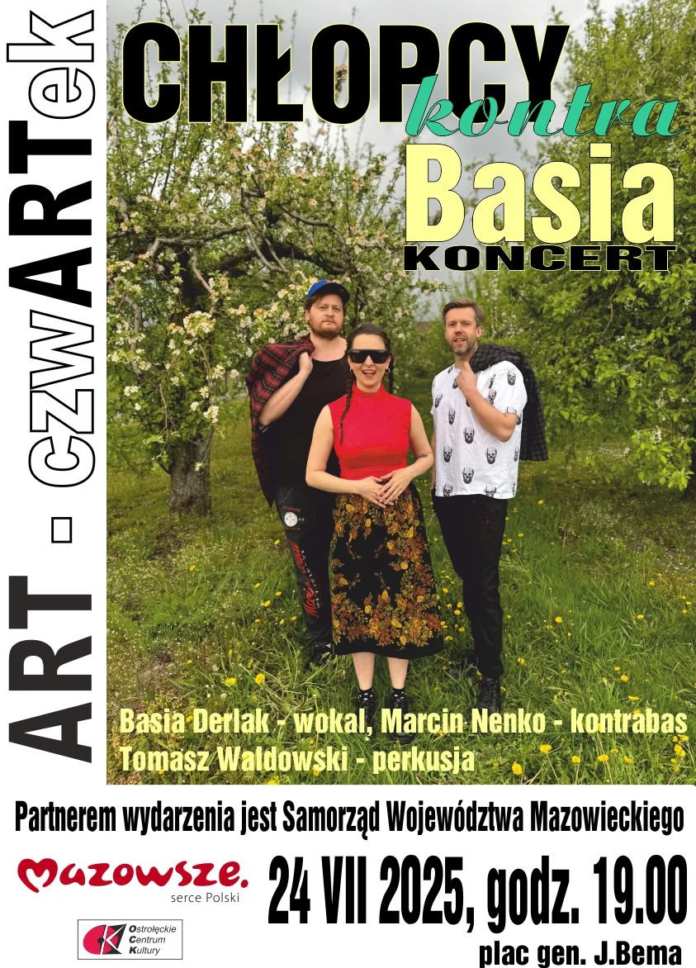 Za tydzień kolejny ART czwARTek w Ostrołęce. 24 lipca o 19 na placu gen. J. Bema wystąpi zespół Chłopcy kontra Basia.