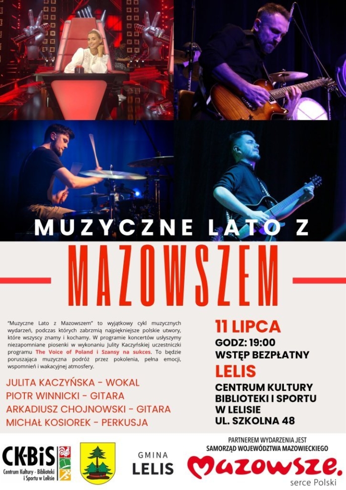 11 lipca w Centrum Kultury – Biblioteki i Sportu w Lelisie odbędzie się wyjątkowy koncert w ramach cyklu Muzyczne Lato z Mazowszem!