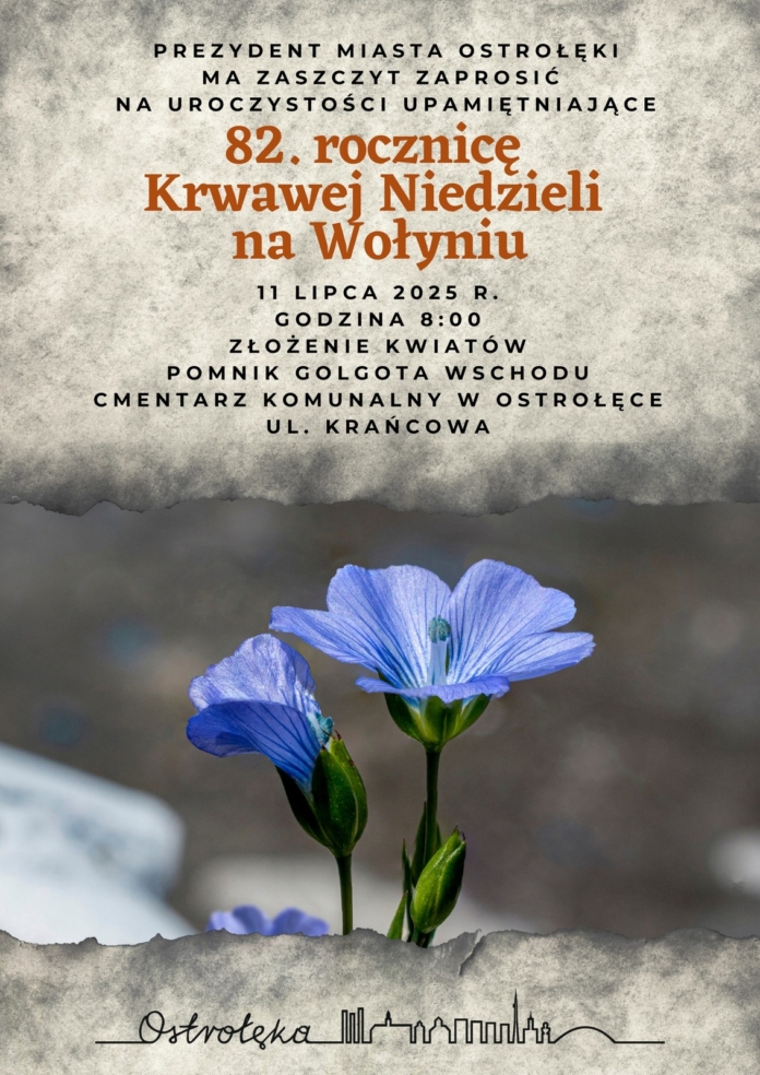 W piątek, 11 lipca o godzinie 8:00, mieszkańcy Ostrołęki będą mogli wspólnie oddać hołd pomordowanym. Uroczystości odbędą się przy Pomniku Golgota Wschodu na Cmentarzu Komunalnym przy ul. Krańcowej. Do udziału w wydarzeniu zaprasza Prezydent Miasta Ostrołęki, Paweł Niewiadomski.