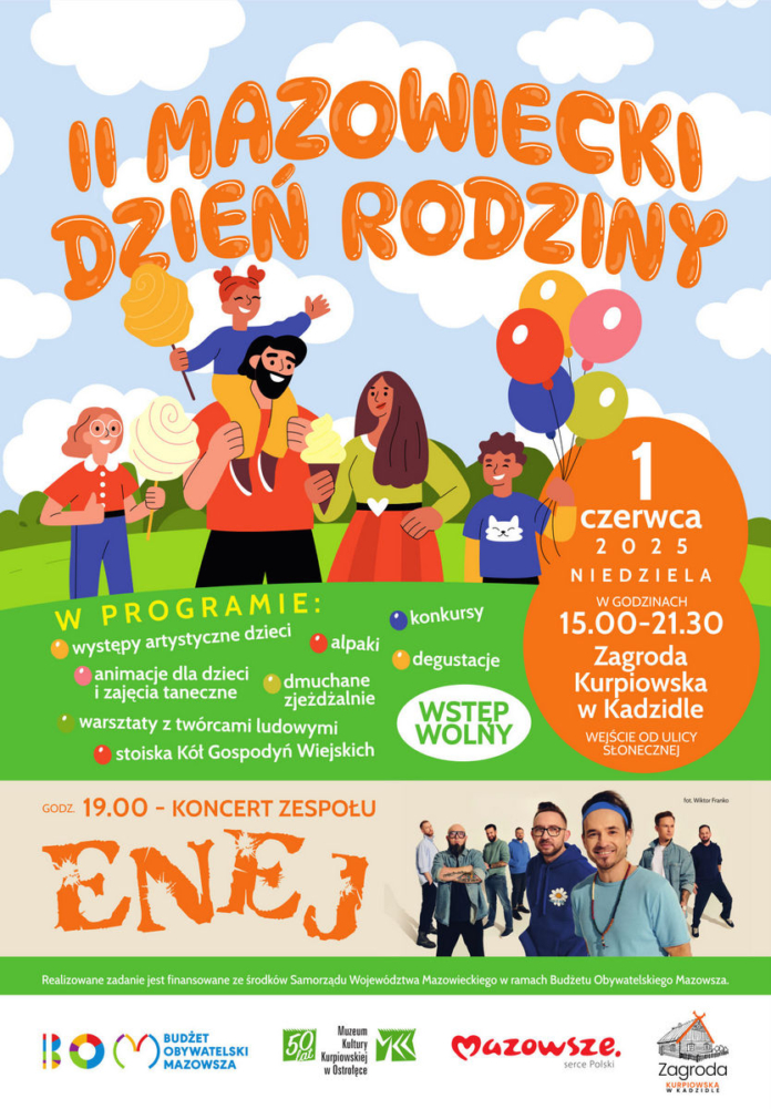 Wstęp na II Mazowiecki Dzień Rodziny jest wolny, a wydarzenie odbywa się przy wsparciu Samorządu Województwa Mazowieckiego, w ramach Budżetu Obywatelskiego Mazowsza.