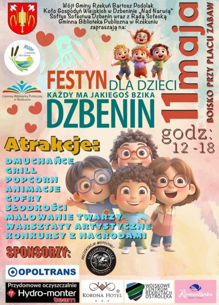 Organizatorzy przygotowali moc atrakcji, które z pewnością ucieszą najmłodszych mieszkańców i ich rodziny. W programie dmuchańce — zjeżdżalnie i zamki do skakania, które od lat są ulubioną rozrywką dzieci, grill z przekąskami, konkursy z nagrodami, warsztaty, podczas których dzieci będą mogły odkrywać swoje pasje i rozwijać talenty. Zaprasza wójt Bartosz Podolak.