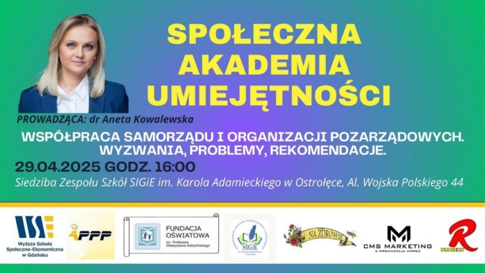 Gościem specjalnym będzie dr Aneta Kowalewska – uznana ekspertka w dziedzinie samorządności, była zastępczyni burmistrza Wyszkowa, doradczyni samorządowa i polityczna, mentorka i trenerka kompetencji społecznych. W swoim wystąpieniu poruszy zarówno kwestie formalne i prawne, jak i praktyczne aspekty skutecznej współpracy. Nie zabraknie również rekomendacji, które mogą realnie pomóc w budowaniu dialogu i partnerstwa między instytucjami a tzw. trzecim sektorem.