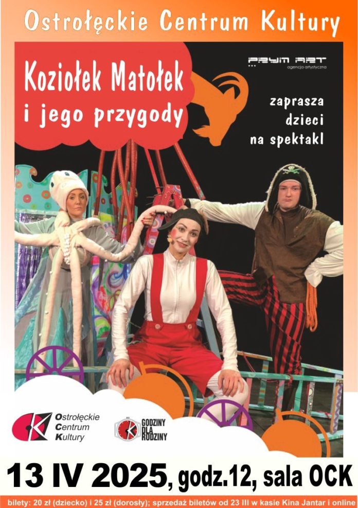 Ostrołęckie Centrum Kultury zaprasza 13 kwietnia na rodzinny spektakl 'Koziołek Matołek i jego przygody”.