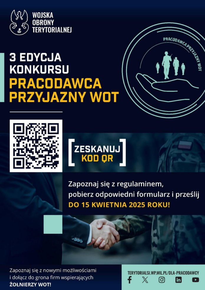 Szczegóły dostępne pod kodem QR, a także na stronie https://www.wojsko-polskie.pl/5bot/articles/aktualnosci/pracodawca-przyjazny-wot/
