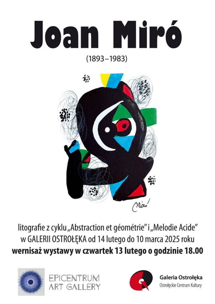 ’Galeria Ostrołęka” Ostrołęckiego Centrum Kultury zaprasza na wernisaż wystawy litografii jednego z najwybitniejszych przedstawicieli sztuki współczesnej, Joana Miró. Uroczyste otwarcie odbędzie się w czwartek, 13 lutego, o godzinie 18 w siedzibie galerii.