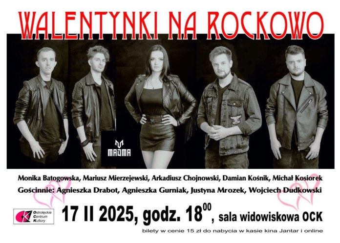 Luty nieodłącznie kojarzy się z Walentynkami, a to doskonała okazja, by spędzić wieczór przy dźwiękach dobrej muzyki. Klub OCZKO zaprasza 17 lutego o godzinie 18 na koncert, który odbędzie się w sali widowiskowej Ostrołęckiego Centrum Kultury. Na scenie wystąpi rockowy zespół MADMA, który zadba o niezapomniane wrażenia muzyczne: Monika Batogowska, Mariusz Mierzejewski, Arkadiusz Chojnowski, Damian Kośnik i Michał Kosiorek.