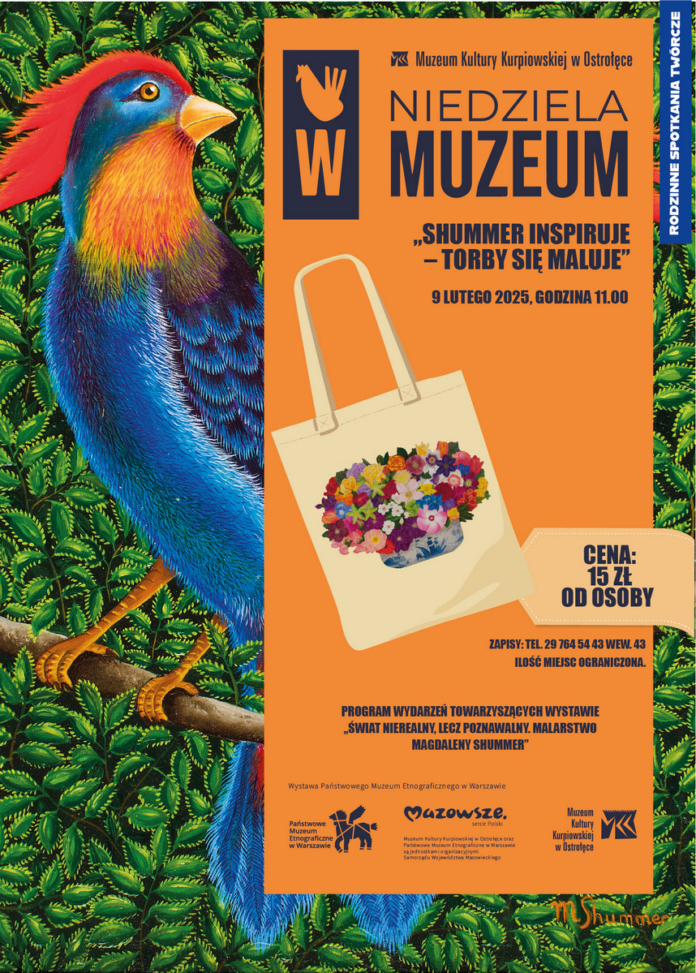Dzięki specjalnym farbom i pędzlom każdy uczestnik zaprojektuje swój własny, oryginalny gadżet, który będzie nie tylko modny, ale również praktyczny w codziennym użytkowaniu. Inspiracją do twórczych działań stanie się barwna i pełna ekspresji wystawa 'Świat nierealny, lecz poznawalny. Malarstwo Magdaleny Shummer”, prezentowana w Muzeum Kultury Kurpiowskiej w Ostrołęce.