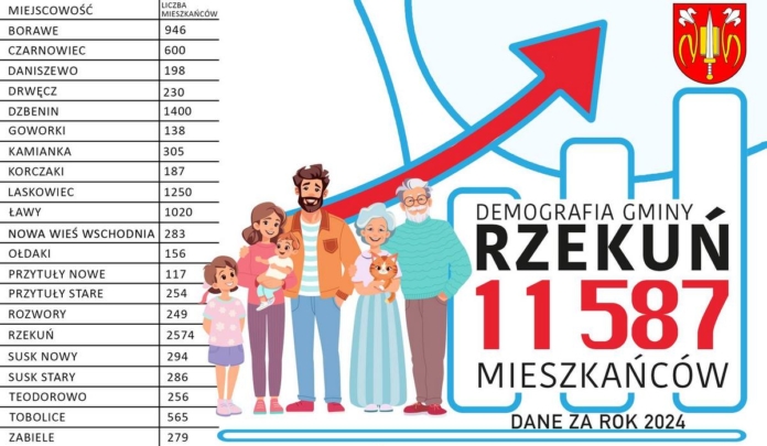 Od kilku lat gmina Rzekuń nieprzerwanie odnotowuje wzrost liczby mieszkańców, co potwierdzają najnowsze dane demograficzne z końca 2024 roku. Według stanu na 31 grudnia liczba mieszkańców wyniosła 11 587 osób. Oznacza to wzrost o 135 osób w porównaniu z rokiem poprzednim, kiedy to gminę zamieszkiwało 11 452 osób.