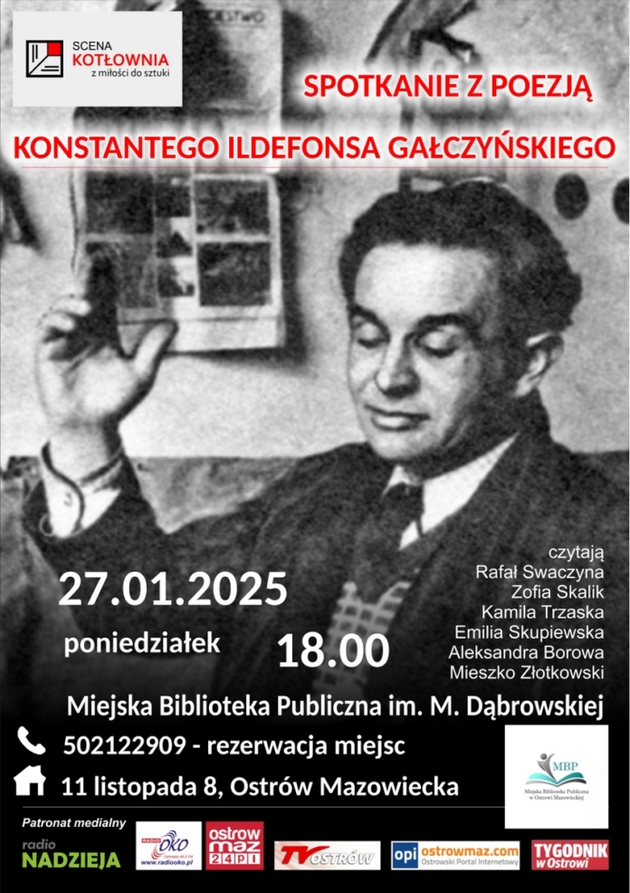 Teatr Scena Kotłownia w Ostrowi Mazowieckiej zaprasza na wieczór poezji czytanej. Tym razem zaprezentowane zostaną utwory Konstantego Ildefonsa Gałczyńskiego.