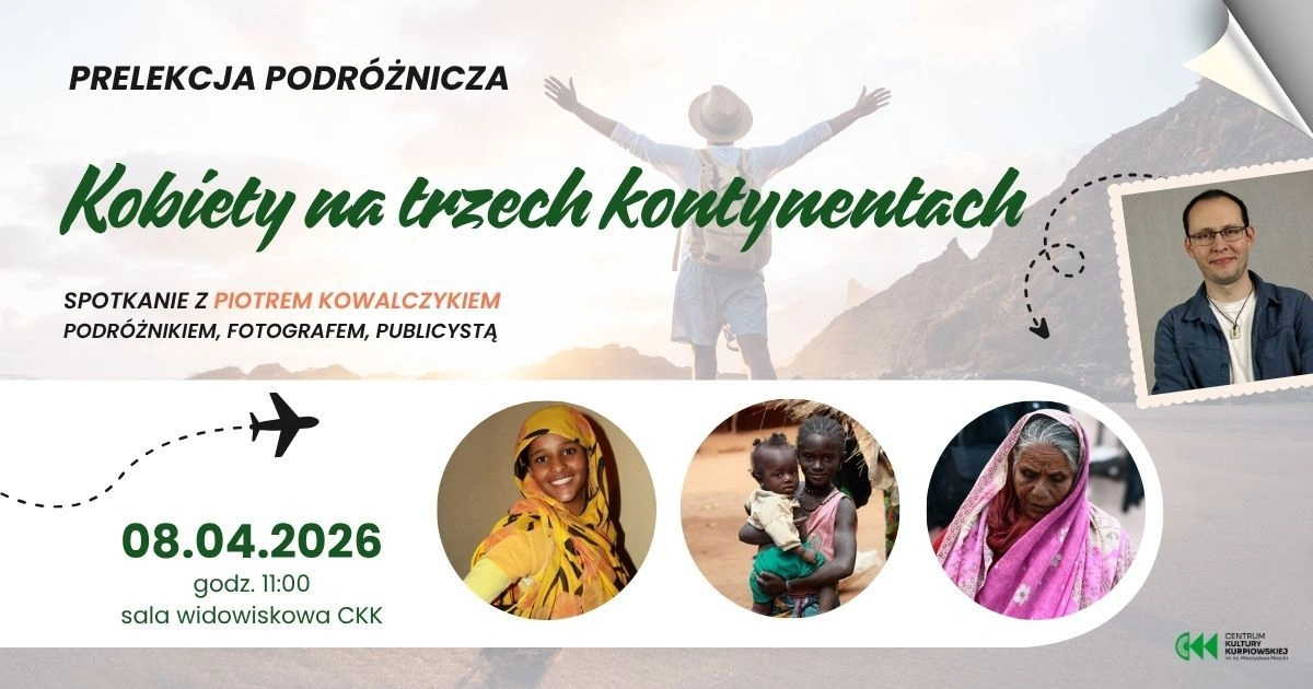 Podczas wydarzenia zatytułowanego 'Kobiety na trzech kontynentach” prelegent opowie o kobietach, które spotkał w Pakistanie, Mauretanii i Kambodży. Słuchacze poznają codzienność mieszkanek muzułmańskiego Pakistanu, realia życia w saharyjskim miasteczku, gdzie jeszcze niedawno istniało niewolnictwo, a także kulisy kambodżańskiego zwyczaju pozyskiwania i przygotowywania potraw z tarantuli.