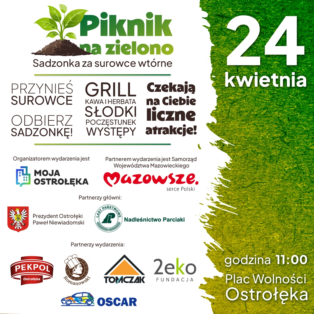 W Ostrołęce, Makowie Mazowieckim i Ostrowi Mazowieckiej odbędzie się proekologiczna akcja 'Piknik na zielono”, organizowana przez portal moja-ostrołęka.pl Wydarzenie łączy edukację ekologiczną z rodzinnym piknikiem i ma zachęcić mieszkańców do dbania o środowisko w praktyczny sposób.
