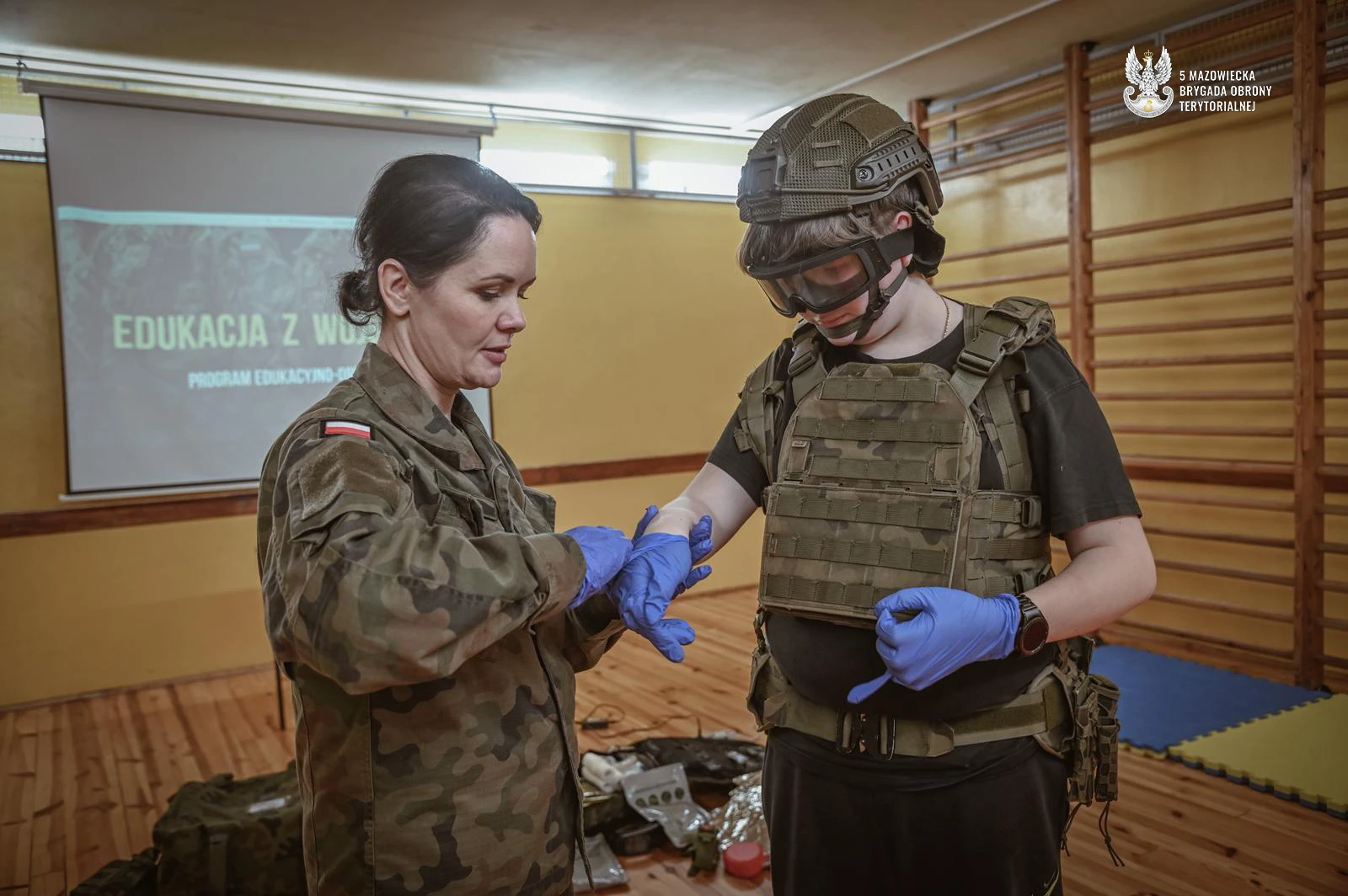 Uczą reagowania w sytuacjach nagłych, udzielania pomocy, zachowania spokoju i świadomego patrzenia na bezpieczeństwo swoje i innych. Zajęcia odbędą się w ponad 50 szkołach w regionie. Mówi st. kpr. Elżbieta Obrębska, rzecznik prasowy 5 Mazowiecka Brygada Obrony Terytorialnej im. ppor. Mieczysława Dziemieszkiewicza, ps. 'Rój’