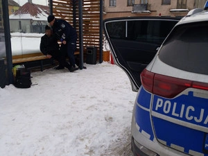 Mężczyzna bez obuwia leżał na chodniku na przystanku autobusowym w Czerwinie.