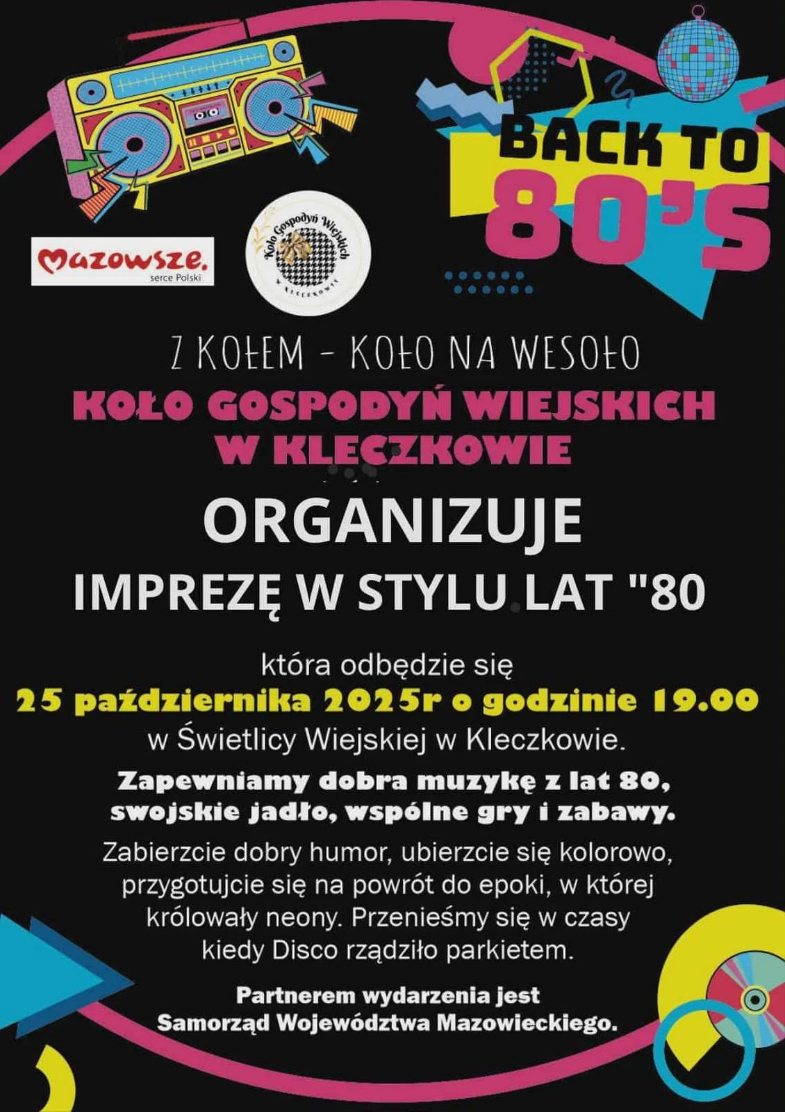 Koło Gospodyń Wiejskich w Kleczkowie zaprasza mieszkańców na wydarzenie 'Z kołem-koło na wesoło’-impreza w stylu lat 80.